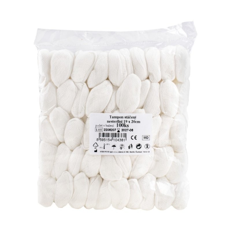 Tampóny stočené z gázy sú vyrobené z bielených vlákien s hustotou 17 vlákien/cm². Rozmer tampónu je odvodený od veľkosti gázového prírezu, z ktorého je tampón stočený. Nesterilné prevedenie.